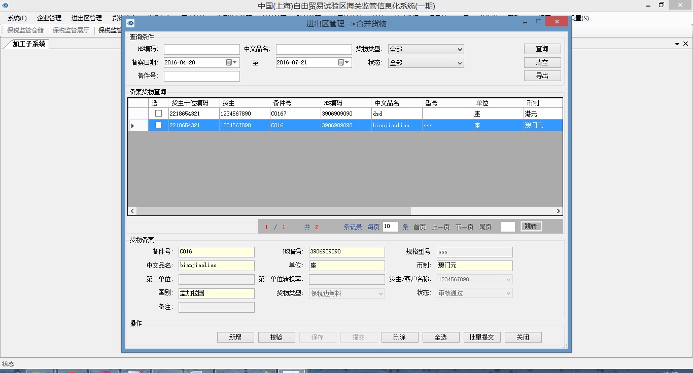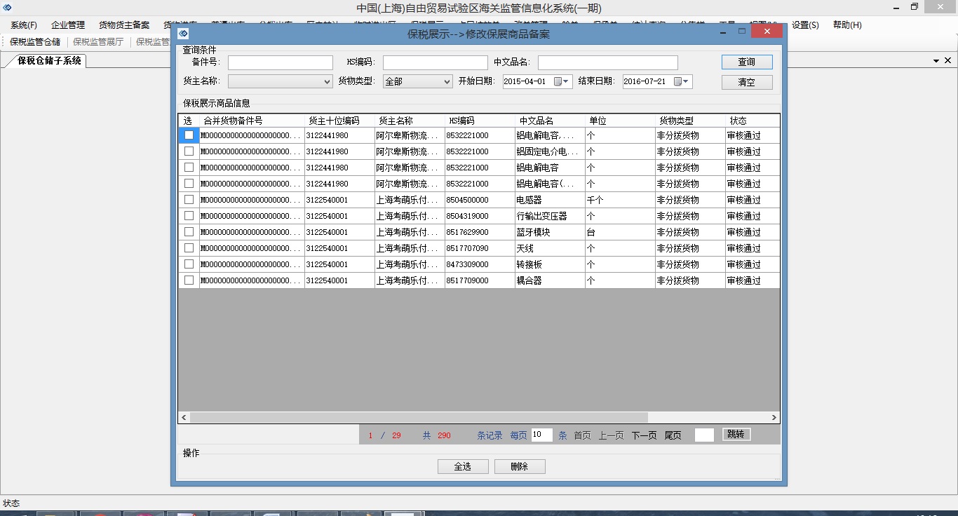 上海海关特殊区域系统